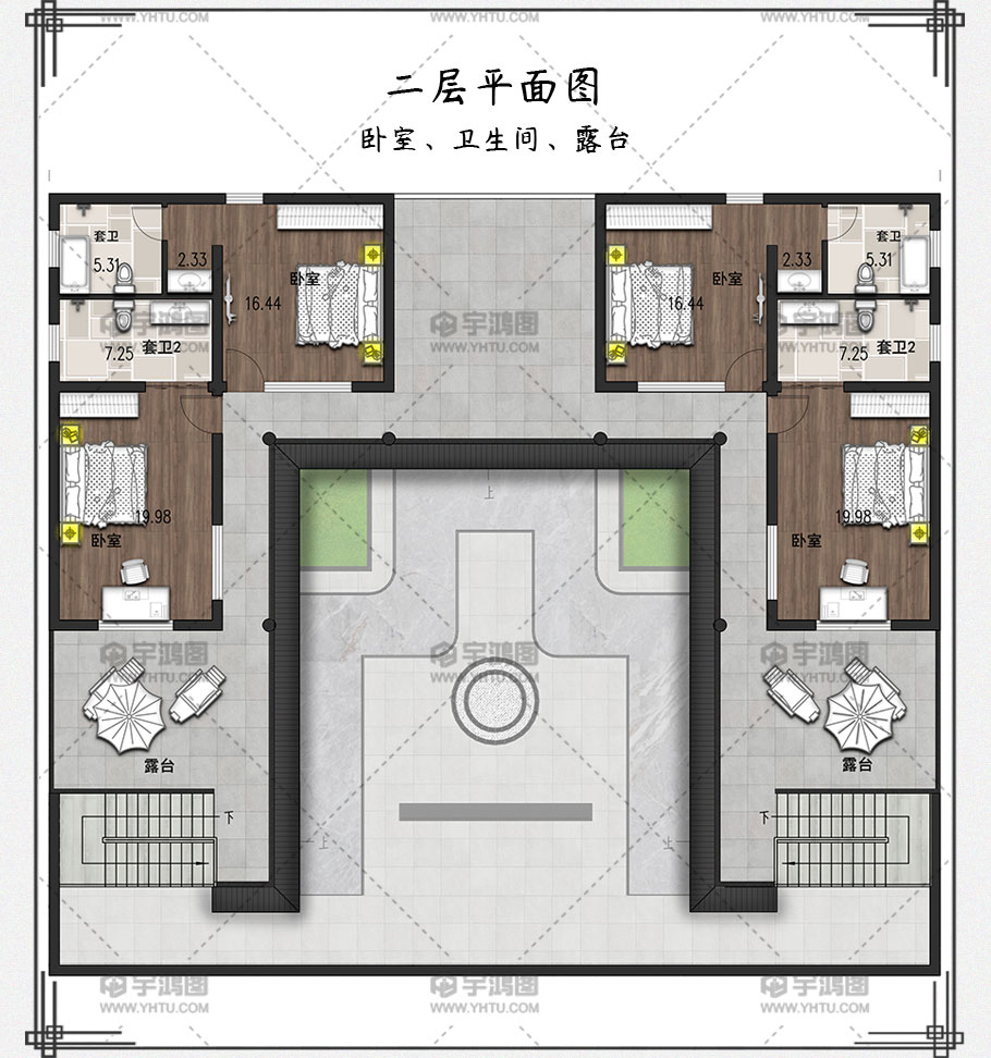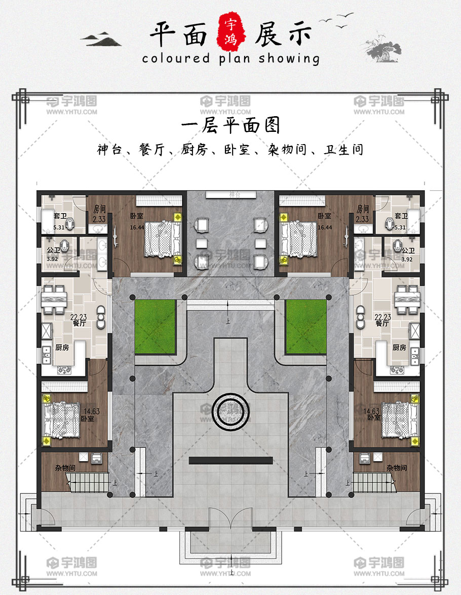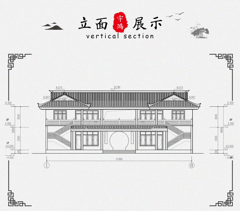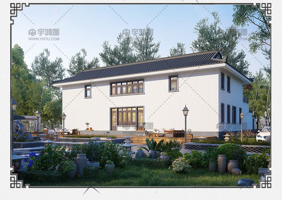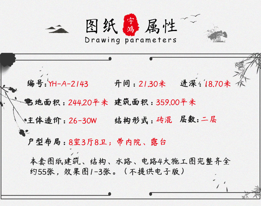 風格:中式 層數:二層 結構形式:磚混結構 圖紙編號:YH-A-2143