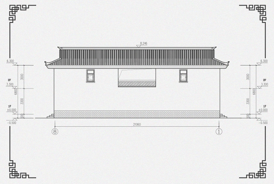 開間:21.3米 進深:18.7米 占地面積:244.2平方米 建筑面積:359平方米