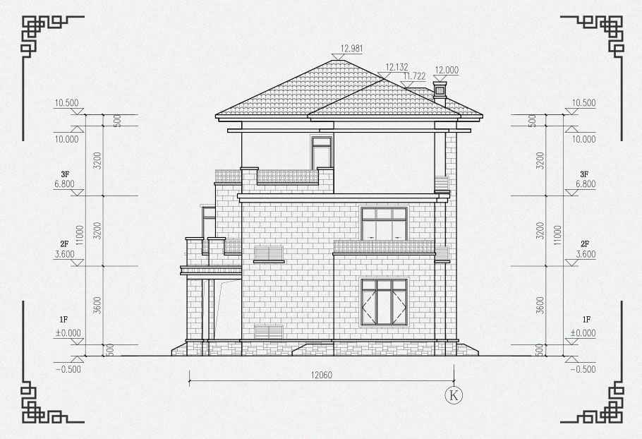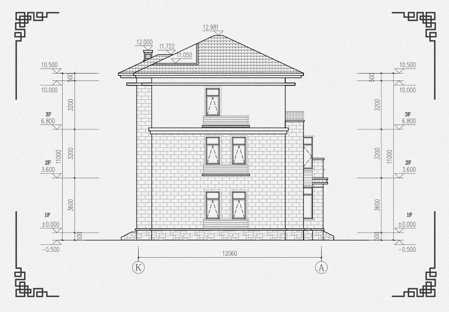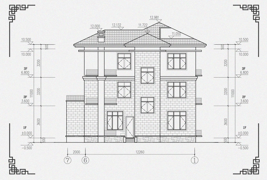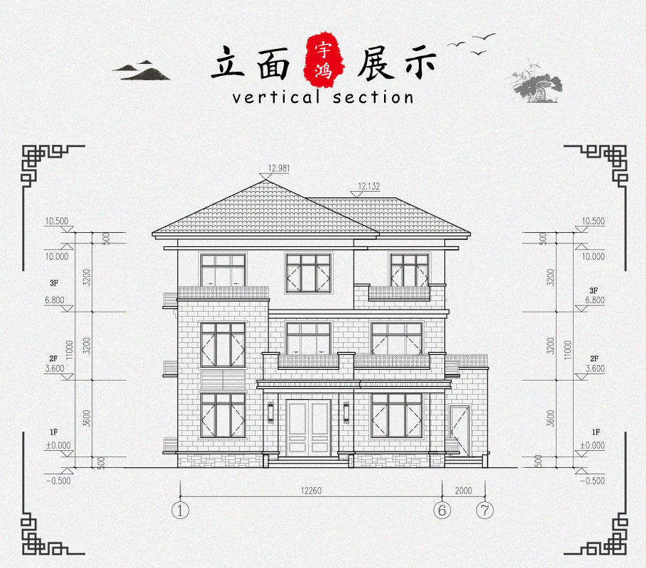風格:新中式 | 層數:三層 | 結構形式:磚混結構 | 圖紙編號:YH-A-3155 |
