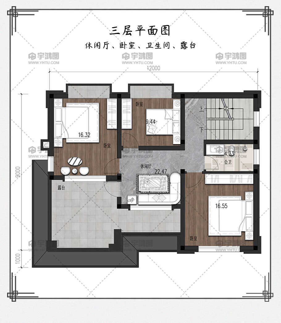 開間:12米 | 進深:10米 | 占地面積:104.9平方米 | 建筑面積:301平方米 |