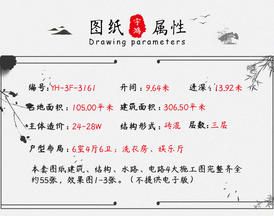 風格:新中式 | 層數:三層 | 結構形式:磚混結構 | 圖紙編號:YH-A-3161 |