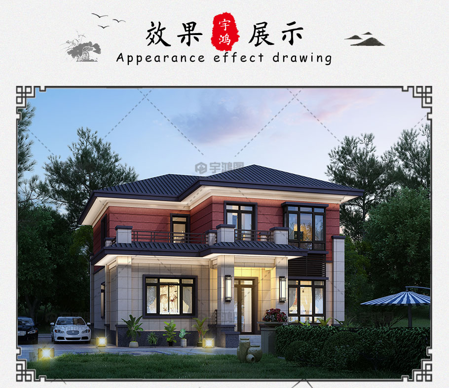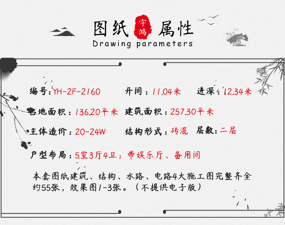 風格:新中式 | 層數:二層 | 結構形式:磚混結構 | 圖紙編號:YH-A-2160 |