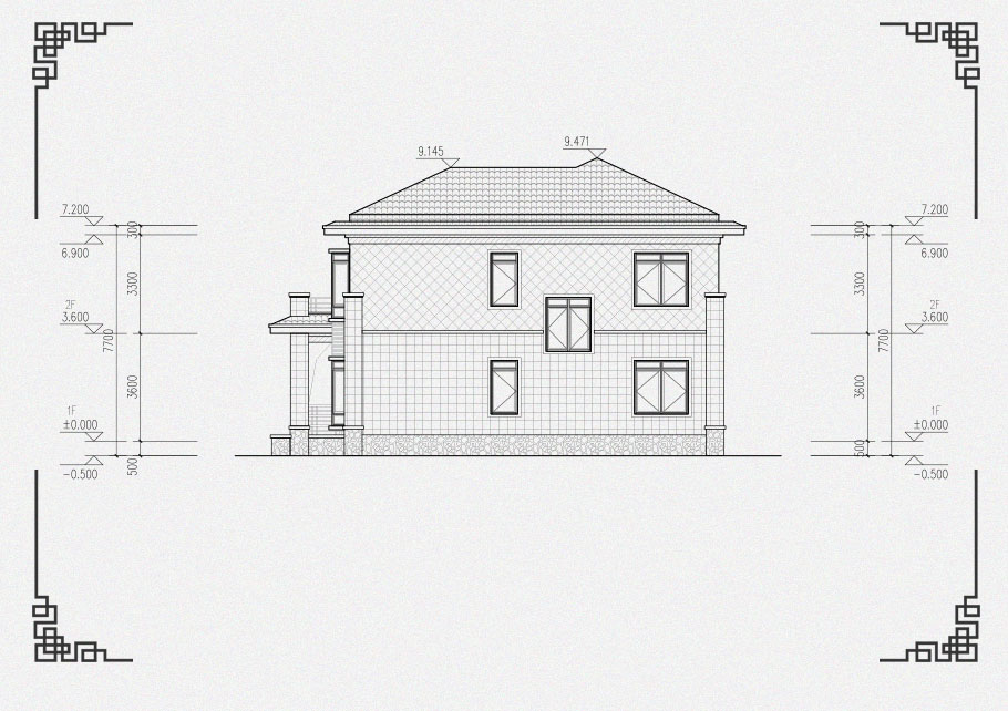 建筑圖: | 建筑平面圖:一層平面圖,二層平面圖; 建筑立面圖:東立面圖,西立面圖,南立面圖,北立面圖,剖面圖; 大樣圖:樓梯詳圖,細部大樣,門窗大樣 |