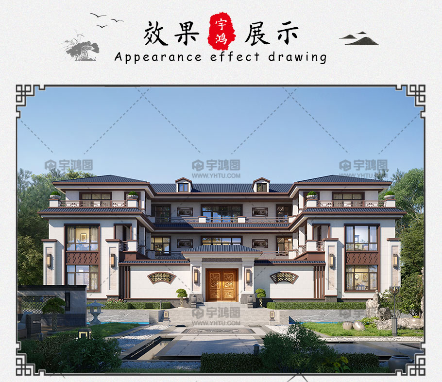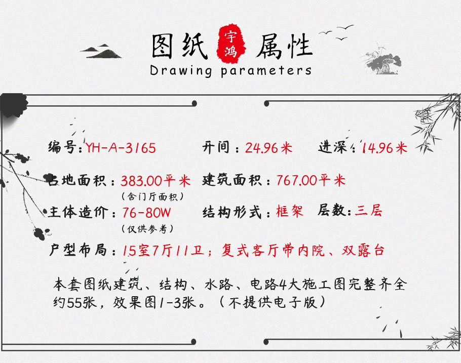 風格:雙拼 | 層數:三層 | 結構形式:框架結構 | 圖紙編號:YH-A-3165 |
