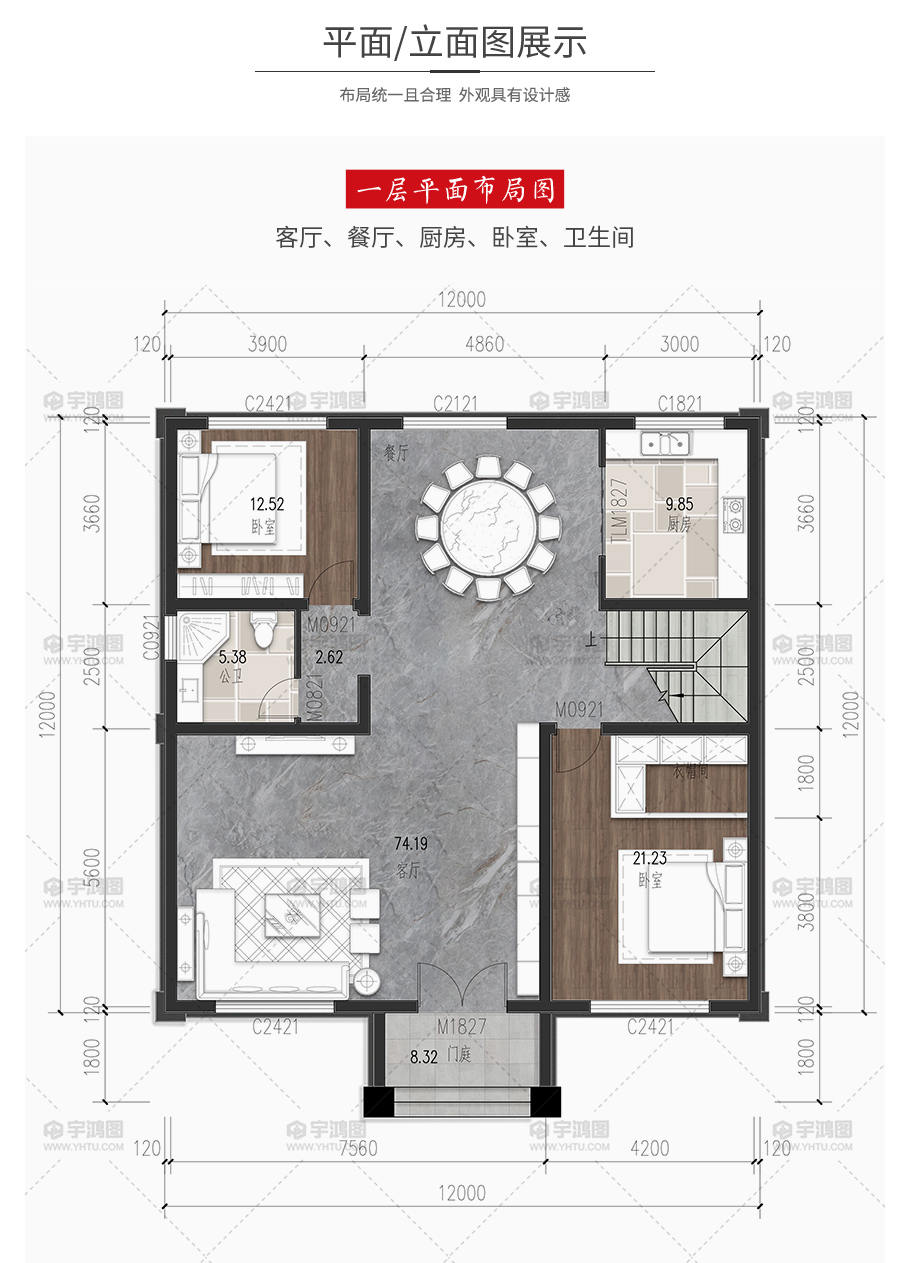 開間:12米 | 進深:12米 | 占地面積:144平方米 | 建筑面積:272.8平方米 |
