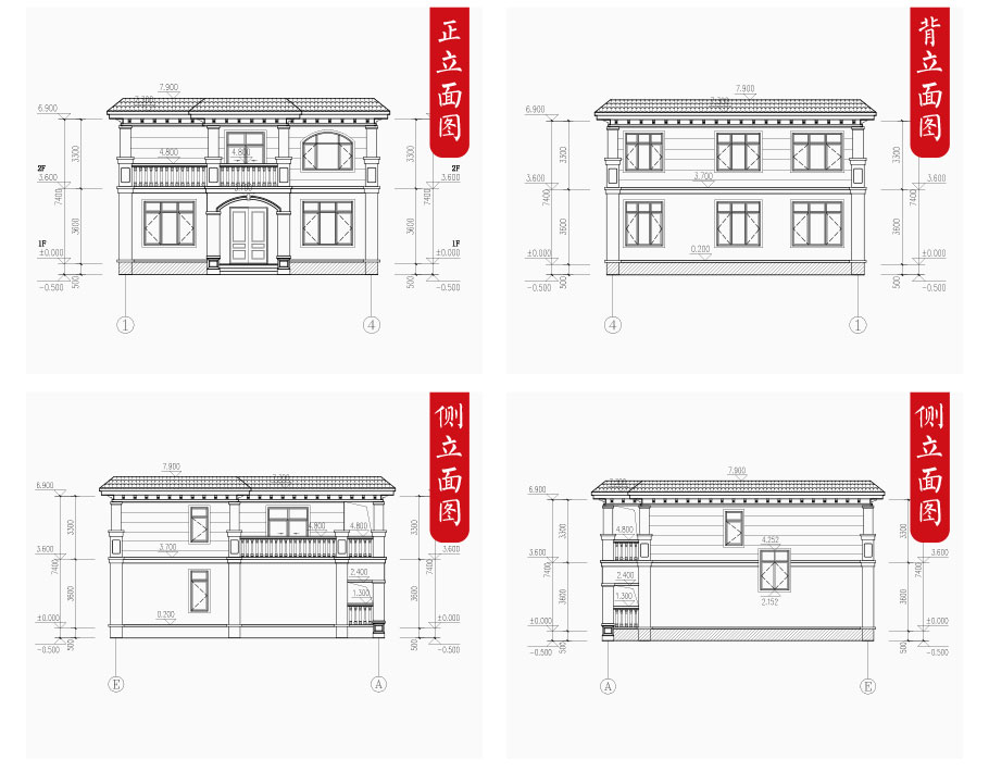 建筑圖: | 建筑平面圖:一層平面圖,二層平面圖; 建筑立面圖:東立面圖,西立面圖,南立面圖,北立面圖,剖面圖; 大樣圖:樓梯詳圖,細部大樣,門窗大樣 |