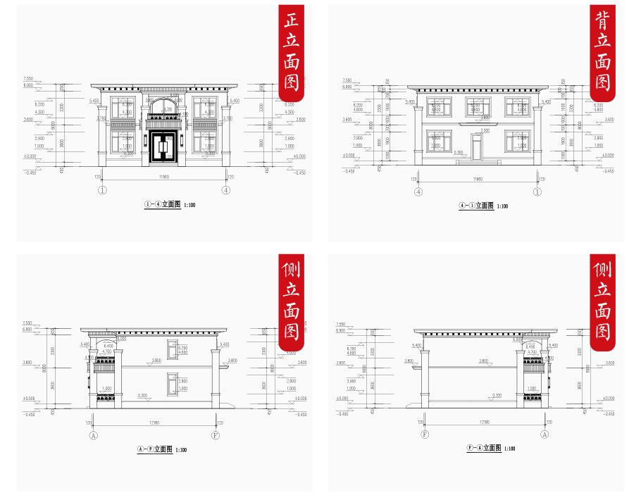 建筑圖: | 建筑平面圖:一層平面圖,二層平面圖; 建筑立面圖:東立面圖,西立面圖,南立面圖,北立面圖,剖面圖; 大樣圖:樓梯詳圖,細部大樣,門窗大樣 |