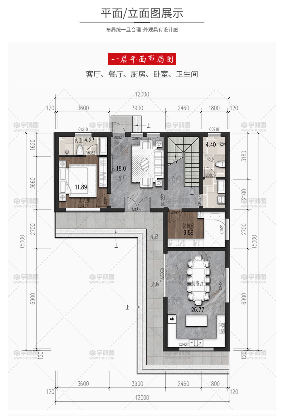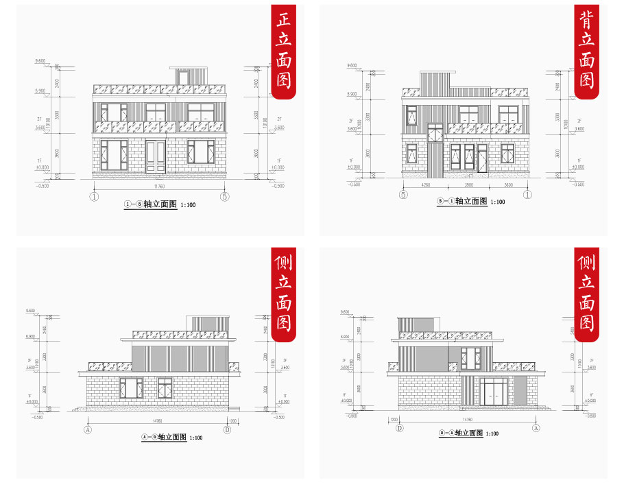 建筑立面圖:東立面圖,西立面圖,南立面圖,北立面圖,剖面圖;