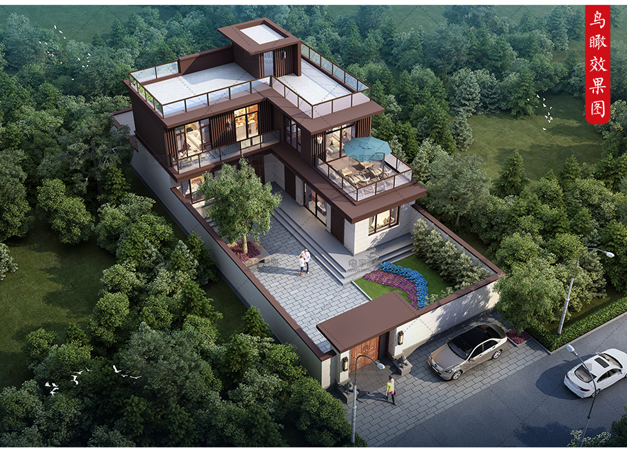 108平L型兩層現(xiàn)代別墅設計圖紙