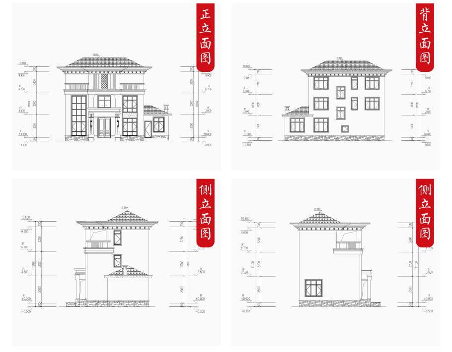 建筑圖: | 建筑平面圖:一層平面圖,二層平面圖,三層平面圖; 建筑立面圖:東立面圖,西立面圖,南立面圖,北立面圖,剖面圖; 大樣圖:樓梯詳圖,細部大樣,門窗大樣 |