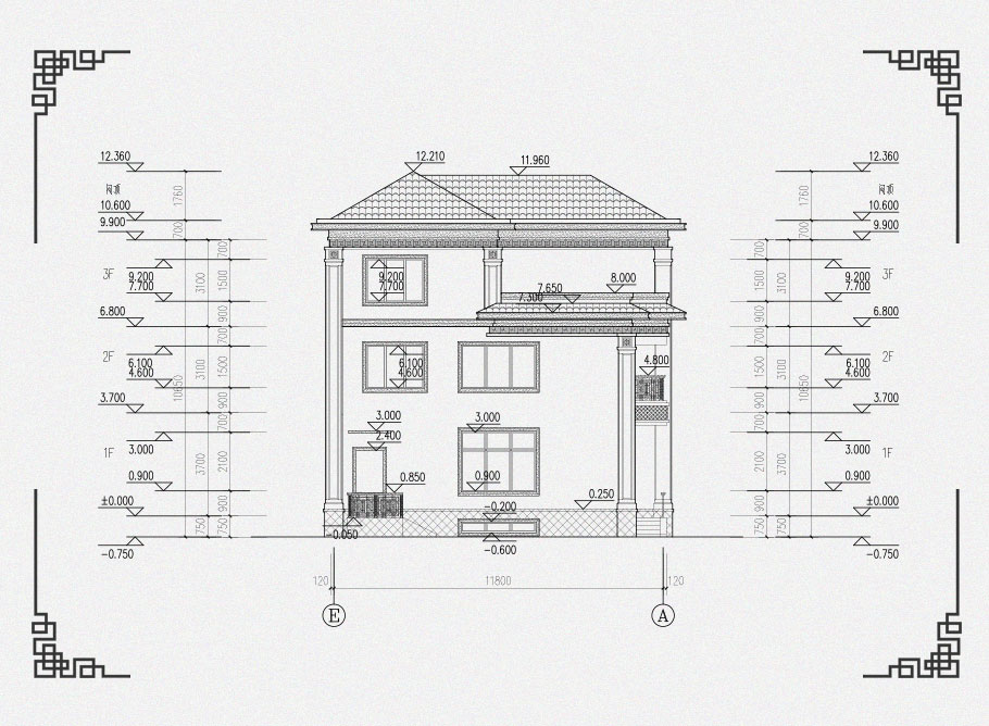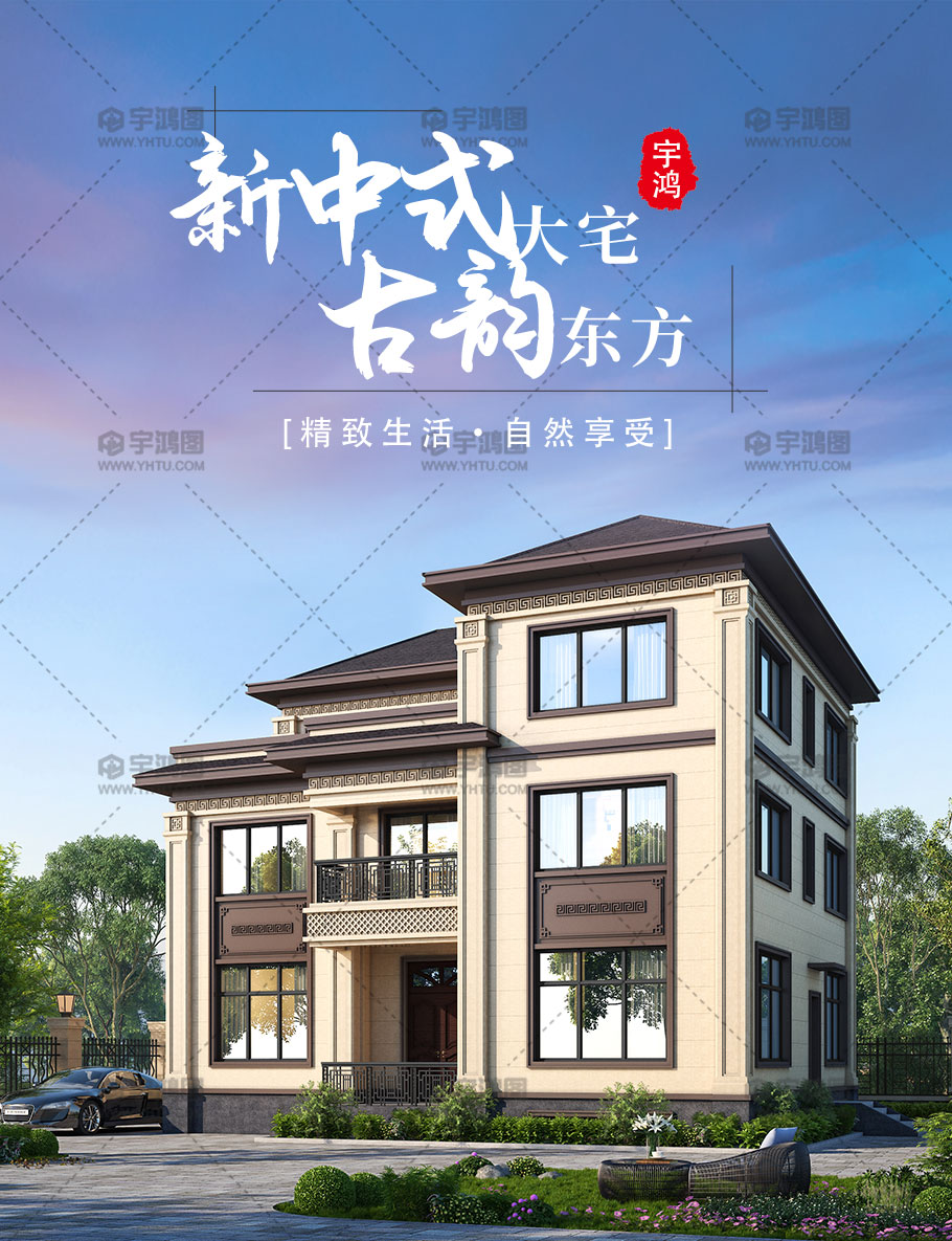 風格:新中式 | 層數:三層 | 結構形式:磚混結構 | 圖紙編號:YH-A-3175 |