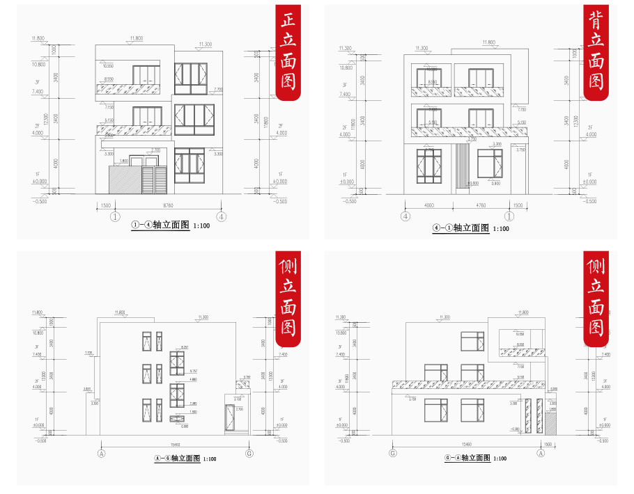 建筑圖: | 建筑平面圖:一層平面圖,二層平面圖,三層平面圖; 建筑立面圖:東立面圖,西立面圖,南立面圖,北立面圖,剖面圖; 大樣圖:樓梯詳圖,細(xì)部大樣,門(mén)窗大樣 |