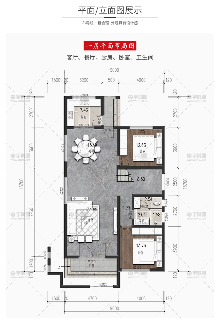 風(fēng)格:現(xiàn)代 | 層數(shù):三層 | 結(jié)構(gòu)形式:磚混結(jié)構(gòu) | 圖紙編號(hào):YH-A-3177 |