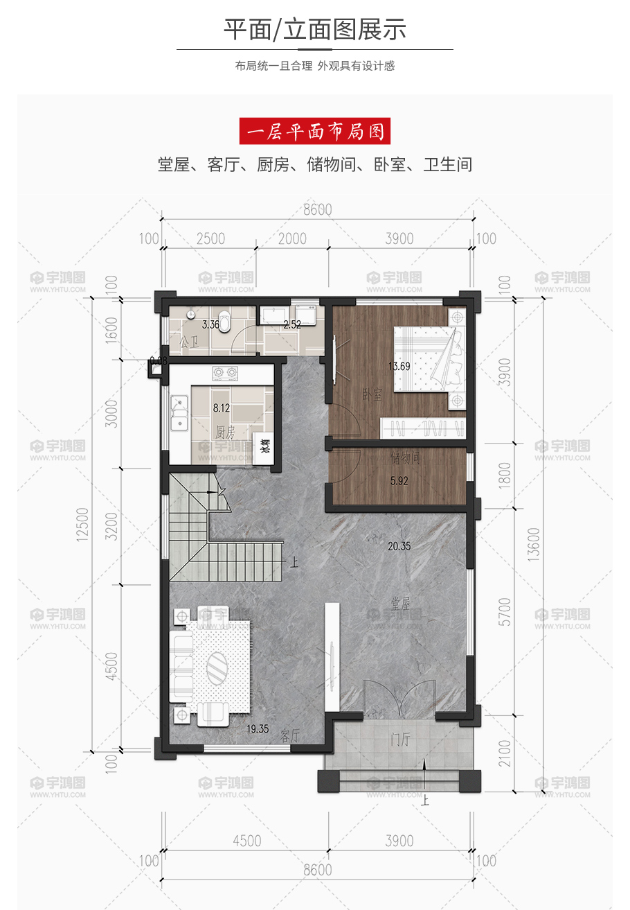 開間:8.6米 | 進深:13.6米 | 占地面積:111平方米 | 建筑面積:277平方米 |