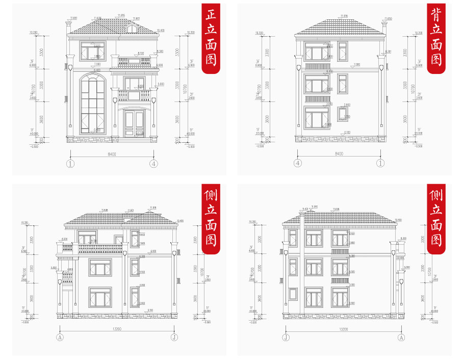 建筑圖: | 建筑平面圖:一層平面圖,二層平面圖,三層平面圖; 建筑立面圖:東立面圖,西立面圖,南立面圖,北立面圖,剖面圖; 大樣圖:樓梯詳圖,細部大樣,門窗大樣 |
