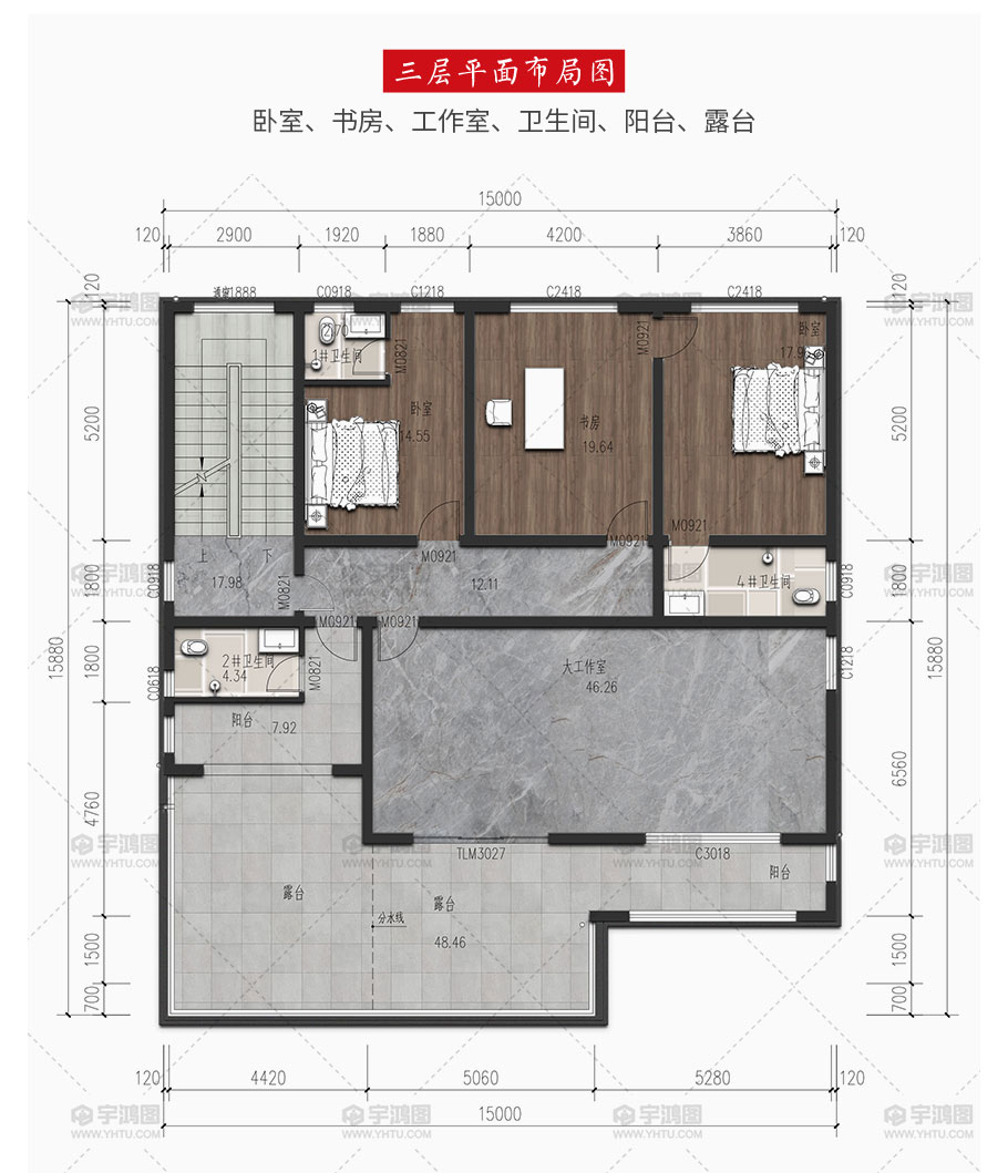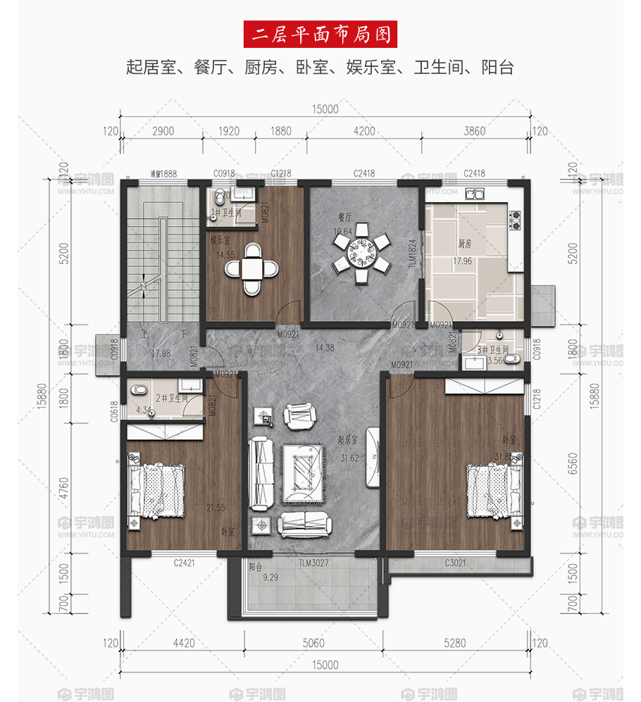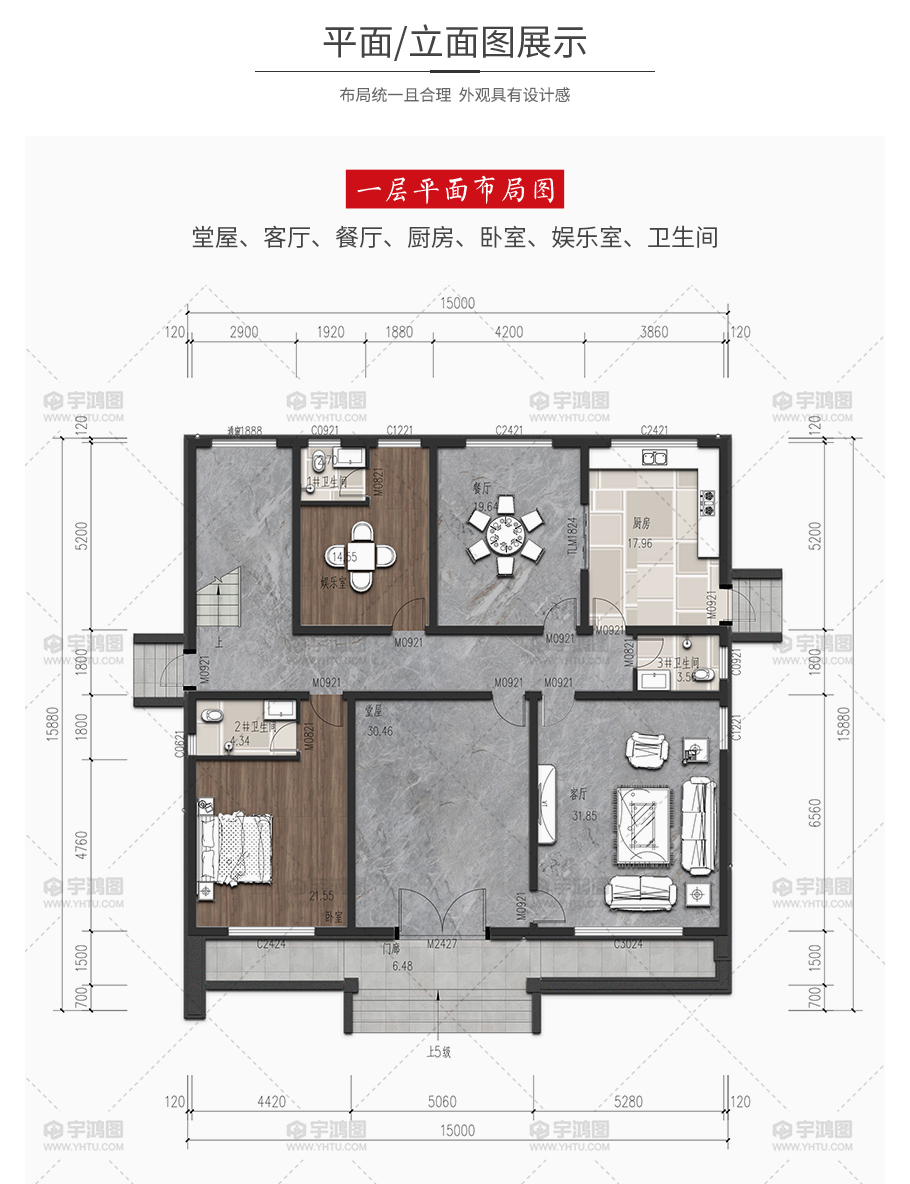 開間:15米 進深:15.88米 占地面積:229.5平方米 建筑面積:600.6平方米