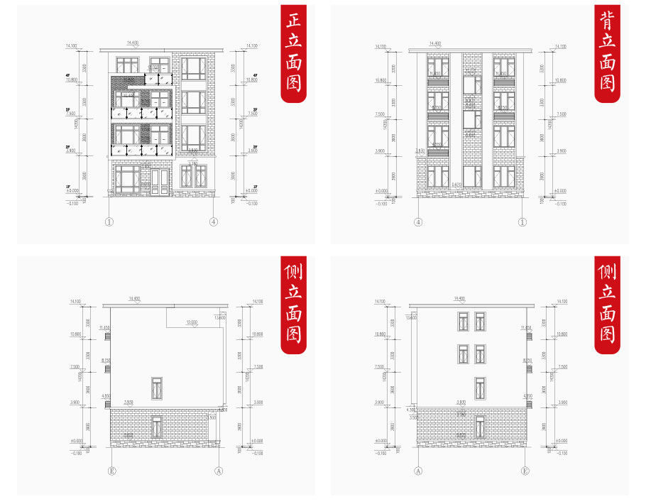建筑圖: | 建筑平面圖:一層平面圖,二層平面圖,三層平面圖,四層平面圖; 建筑立面圖:東立面圖,西立面圖,南立面圖,北立面圖,剖面圖; 大樣圖:樓梯詳圖,細部大樣,門窗大樣 |
