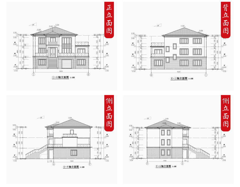 建筑圖: | 建筑平面圖:一層平面圖,二層平面圖,三層平面圖; 建筑立面圖:東立面圖,西立面圖,南立面圖,北立面圖,剖面圖; 大樣圖:樓梯詳圖,細部大樣,門窗大樣 |