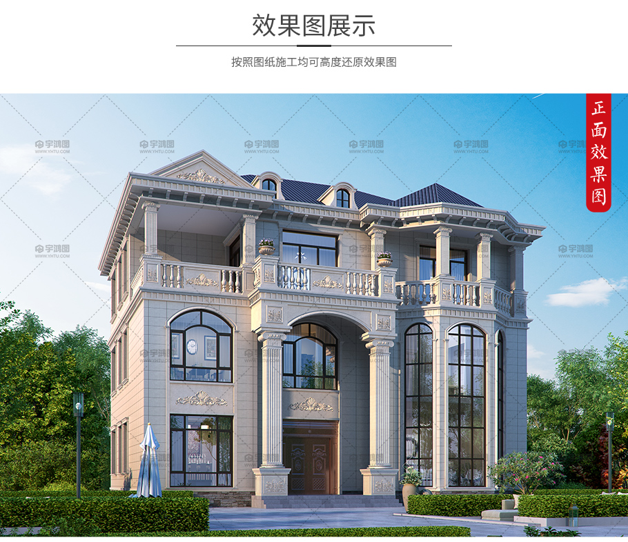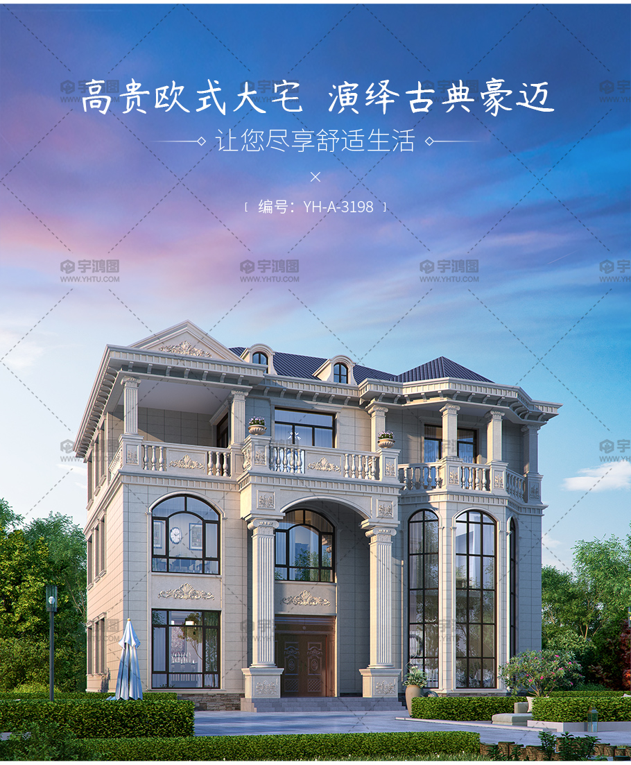 風格:歐式 | 層數:三層 | 結構形式:框架結構 | 圖紙編號:YH-A-3198 |