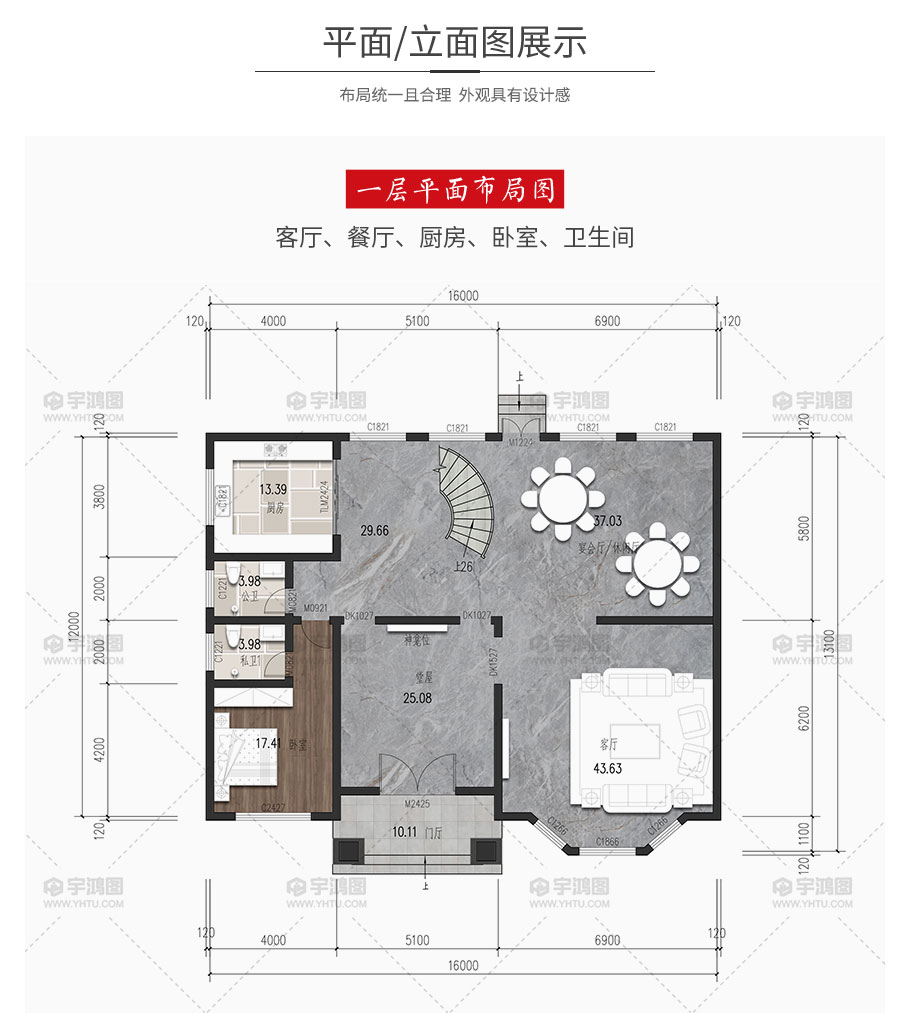 開間:16米 | 進深:13.1米 | 占地面積:209平方米 | 建筑面積:541.4平方米 |
