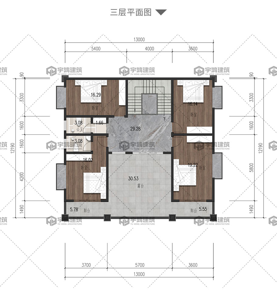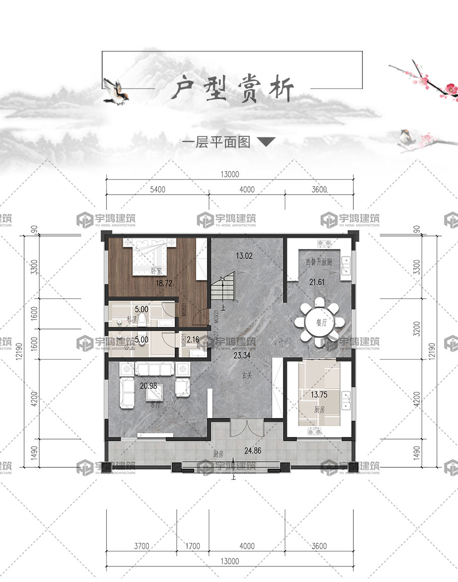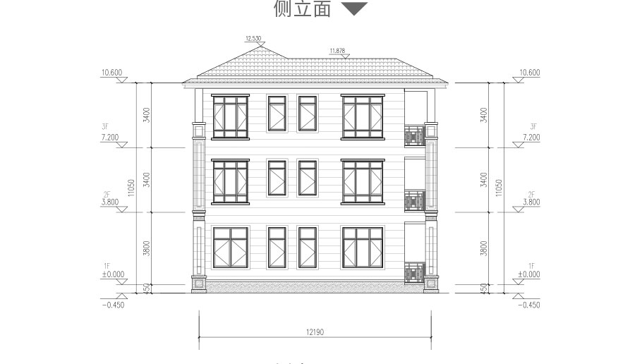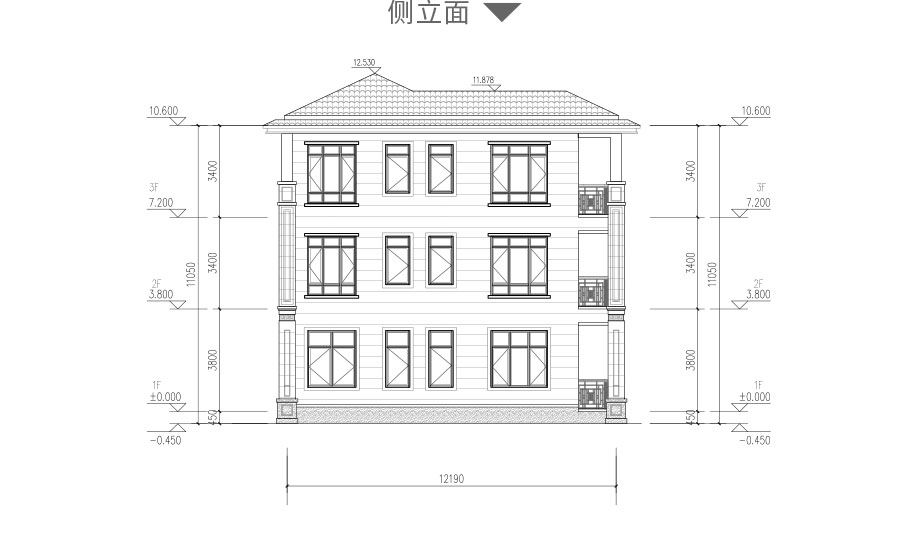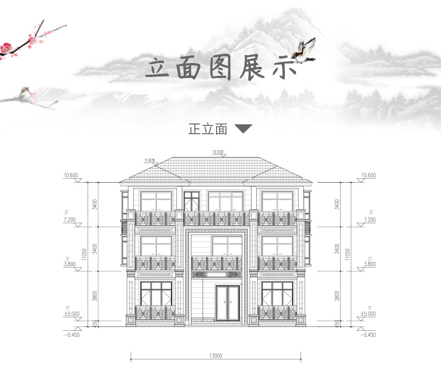 開間:13米 進深:12.19米 占地面積:163平方米 建筑面積:424.1平方米