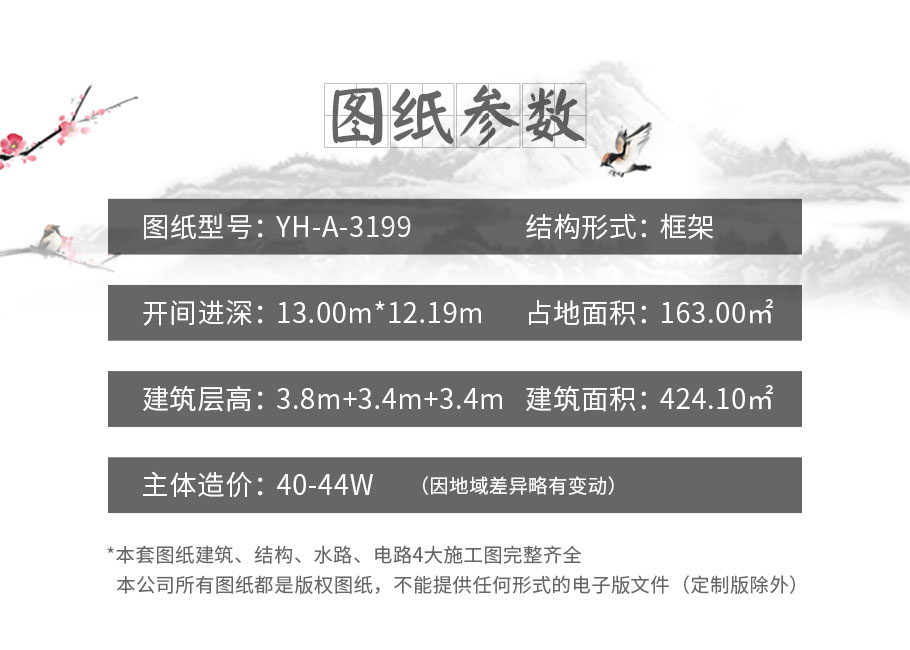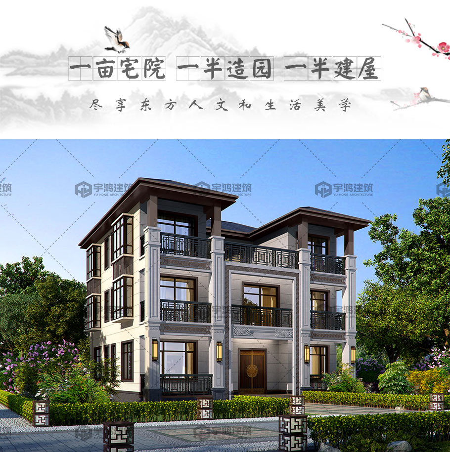 風格:新中式 層數:三層 結構形式:框架結構 圖紙編號:YH-A-3199