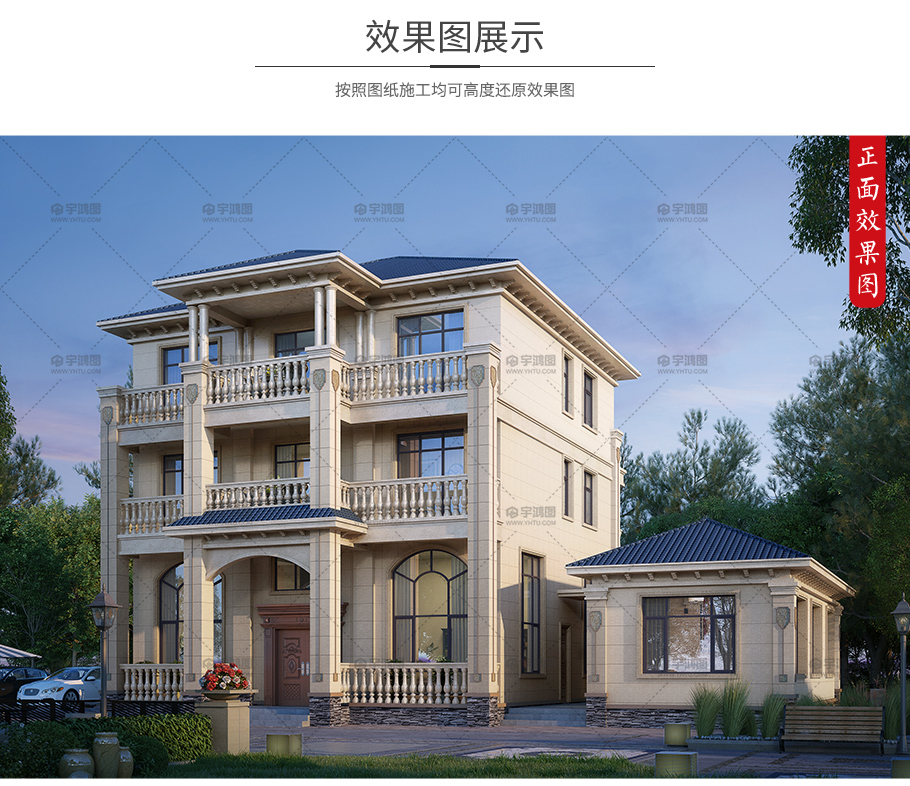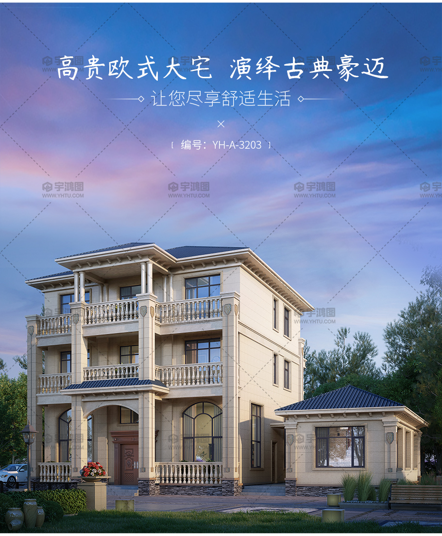 風(fēng)格:歐式 | 層數(shù):三層 | 結(jié)構(gòu)形式:框架結(jié)構(gòu) | 圖紙編號(hào):YH-A-3203 |