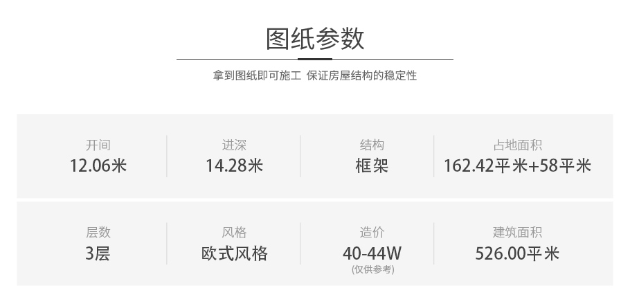 開(kāi)間:12.06米 | 進(jìn)深:14.28米 | 占地面積:162.42平方米 | 建筑面積:526平方米 |