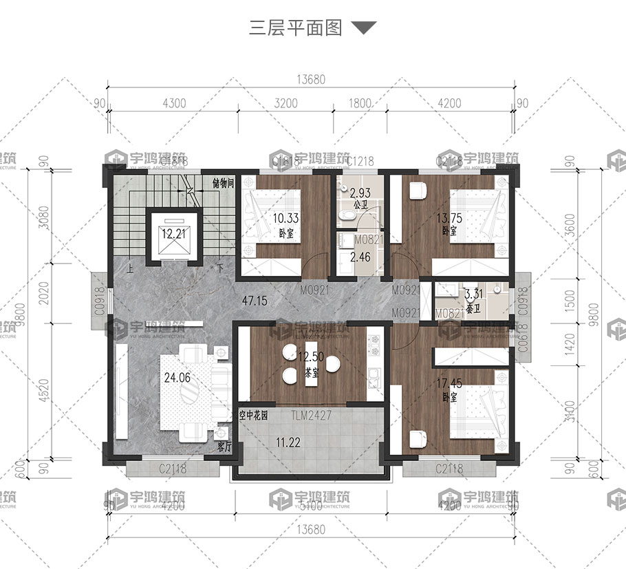 風格:新中式 | 層數:4層以上 | 結構形式:框架結構 | 圖紙編號:YH-A-4037 |