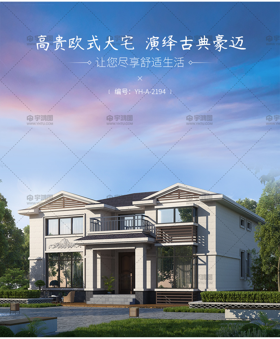 風格:歐式 | 層數:二層 | 結構形式:磚混結構 | 圖紙編號:YH-A-2194 |