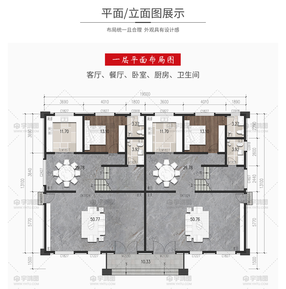 開間:19米 | 進(jìn)深:13.1米 | 占地面積:260平方米 | 建筑面積:726平方米 |