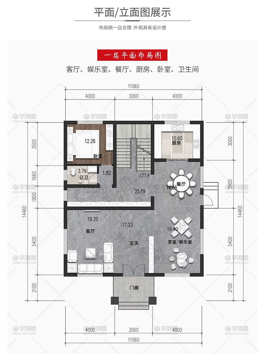 開間:11.06米 | 進深:14.46米 | 占地面積:149平方米 | 建筑面積:380平方米 |