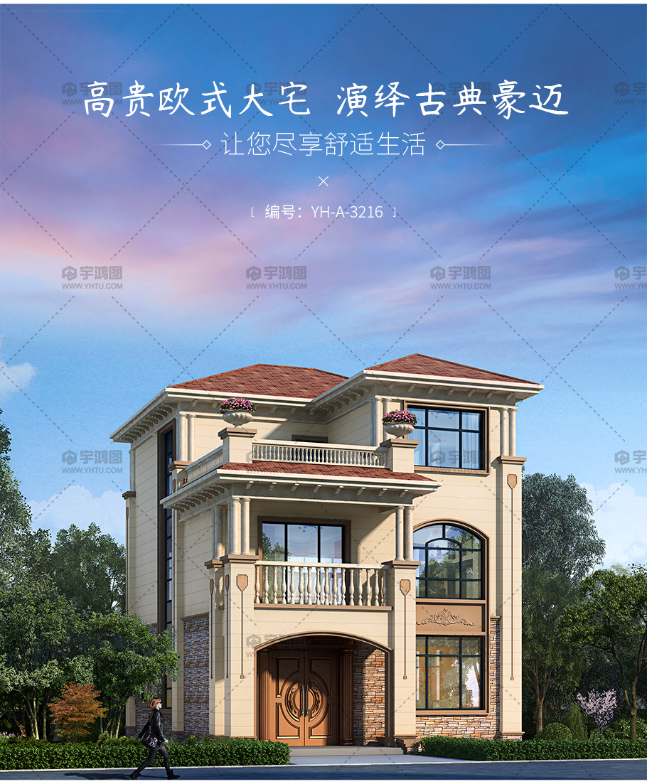 風格:歐式 | 層數:三層 | 結構形式:磚混結構 | 圖紙編號:YH-A-3216 |