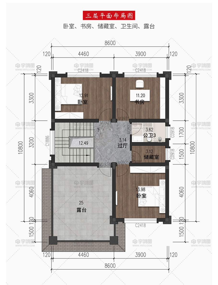 開間:8.6米 | 進深:10.8米 | 占地面積:99.5平方米 | 建筑面積:267平方米 |