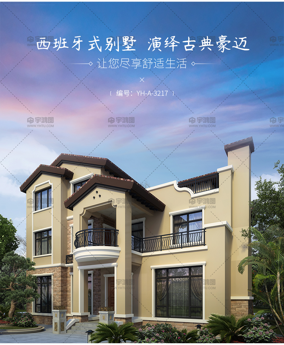 風格:西班牙 | 層數:三層 | 結構形式:框架結構 | 圖紙編號:YH-A-3217 |