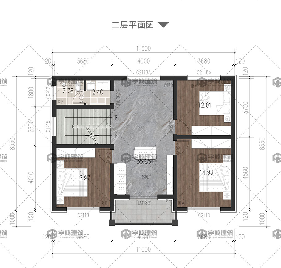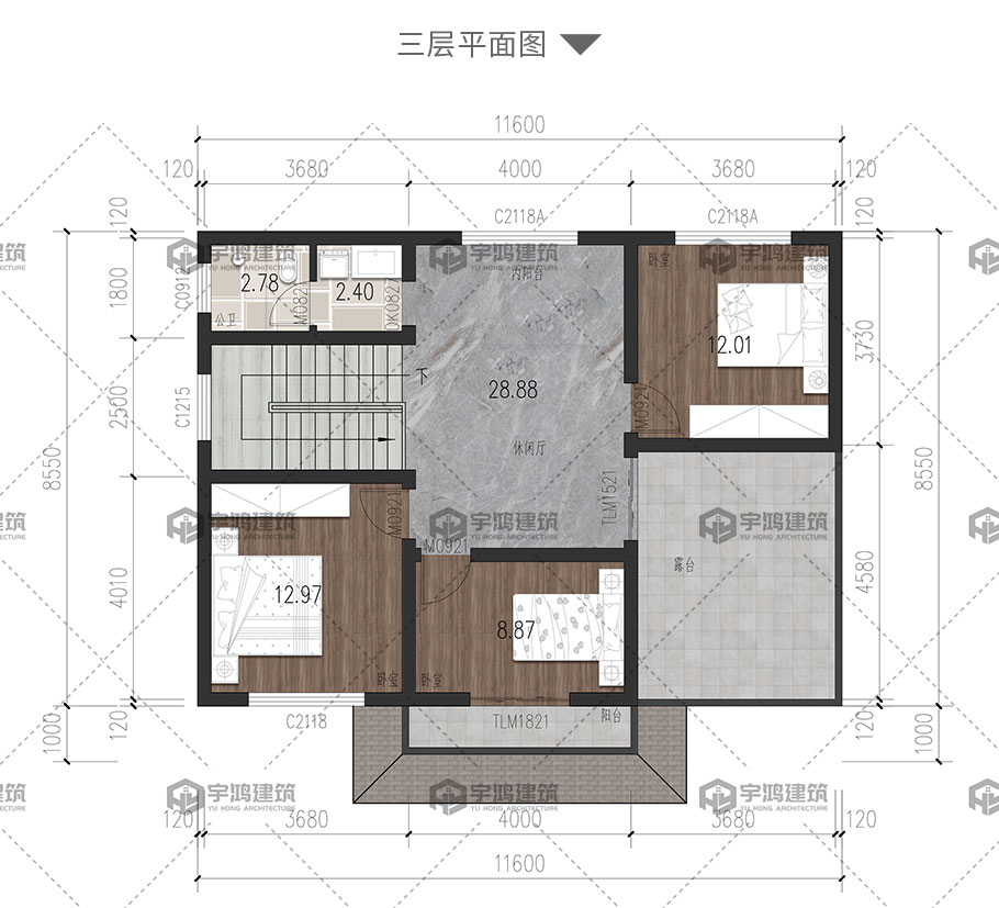 開間:11.6米 | 進深:8.55米 | 占地面積:103.31平方米 | 建筑面積:282.03平方米 |