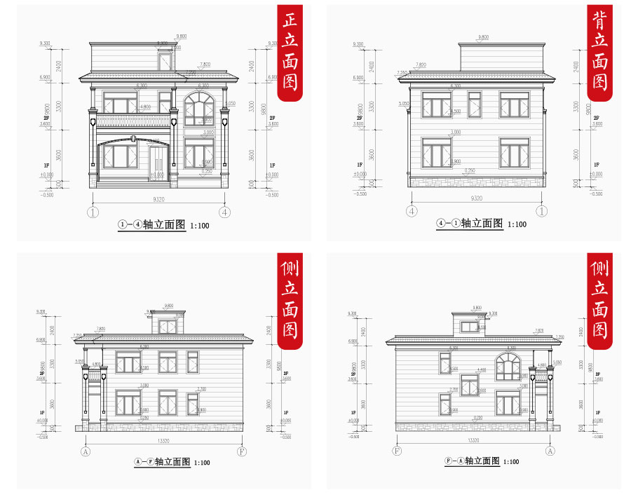建筑圖: | 建筑平面圖:一層平面圖,二層平面圖; 建筑立面圖:東立面圖,西立面圖,南立面圖,北立面圖,剖面圖; 大樣圖:樓梯詳圖,細部大樣,門窗大樣 |