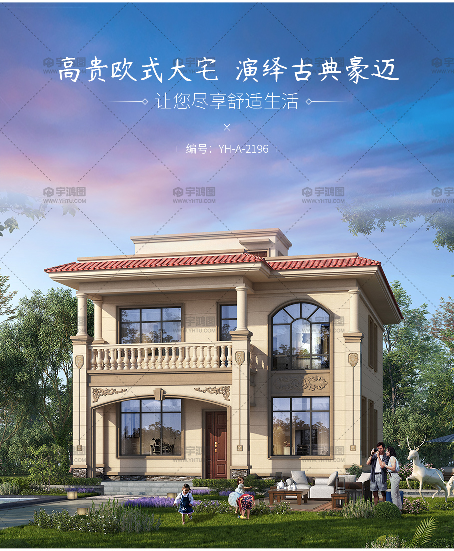 風格:歐式 | 層數:二層 | 結構形式:框架結構 | 圖紙編號:YH-A-2196 |