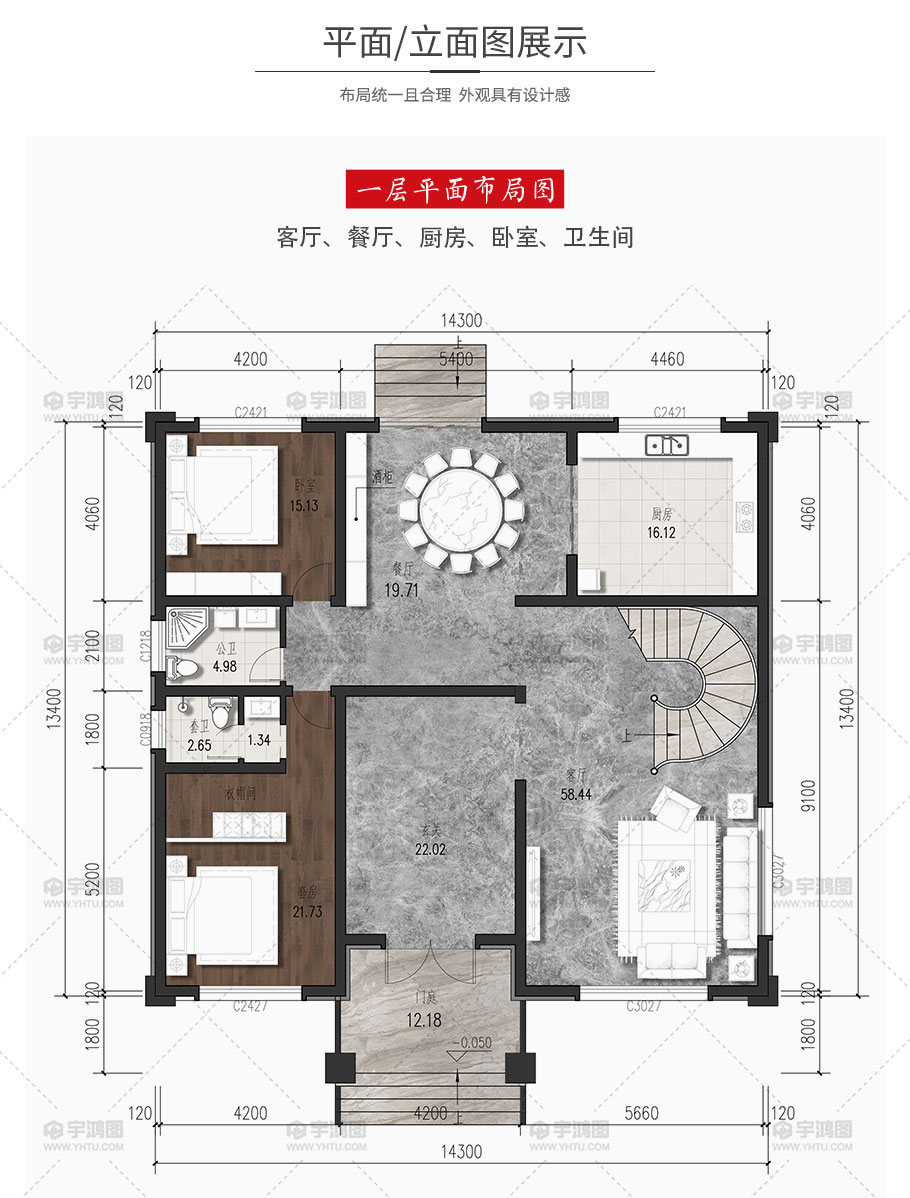 開間:14.3米 | 進深:13.4米 | 占地面積:199平方米 | 建筑面積:500.1平方米 |