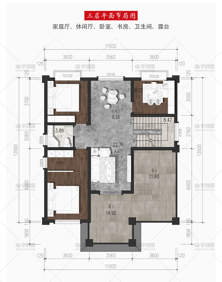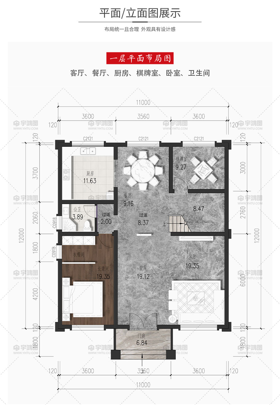 開間:11米 | 進深:12米 | 占地面積:137.2平方米 | 建筑面積:372.6平方米 |