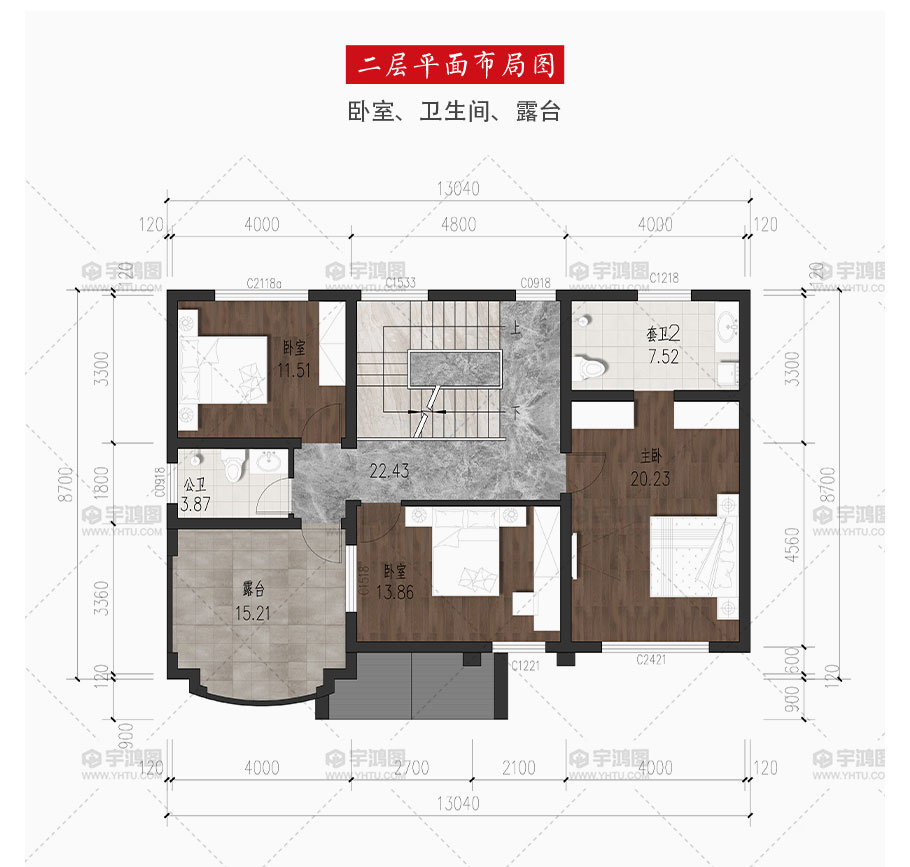 開間:13.04米 | 進深:8.7米 | 占地面積:112.18平方米 | 建筑面積:214.8平方米 |