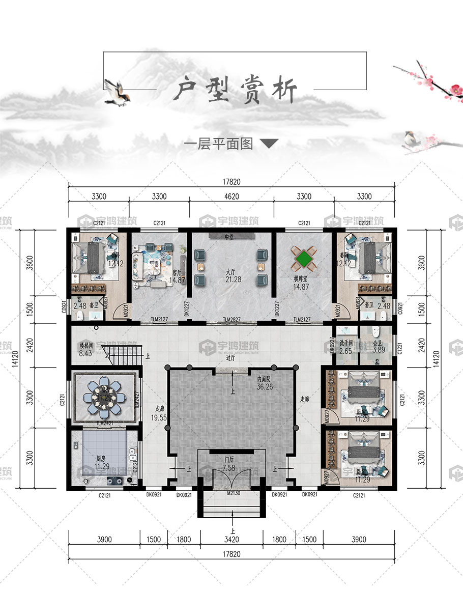 開間:17.82米 | 進深:14.12米 | 占地面積:259平方米 | 建筑面積:376.29平方米 |