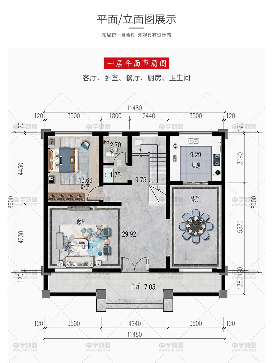 開間:11.48米 | 進深:8.9米 | 占地面積:110平方米 | 建筑面積:205.6平方米 |