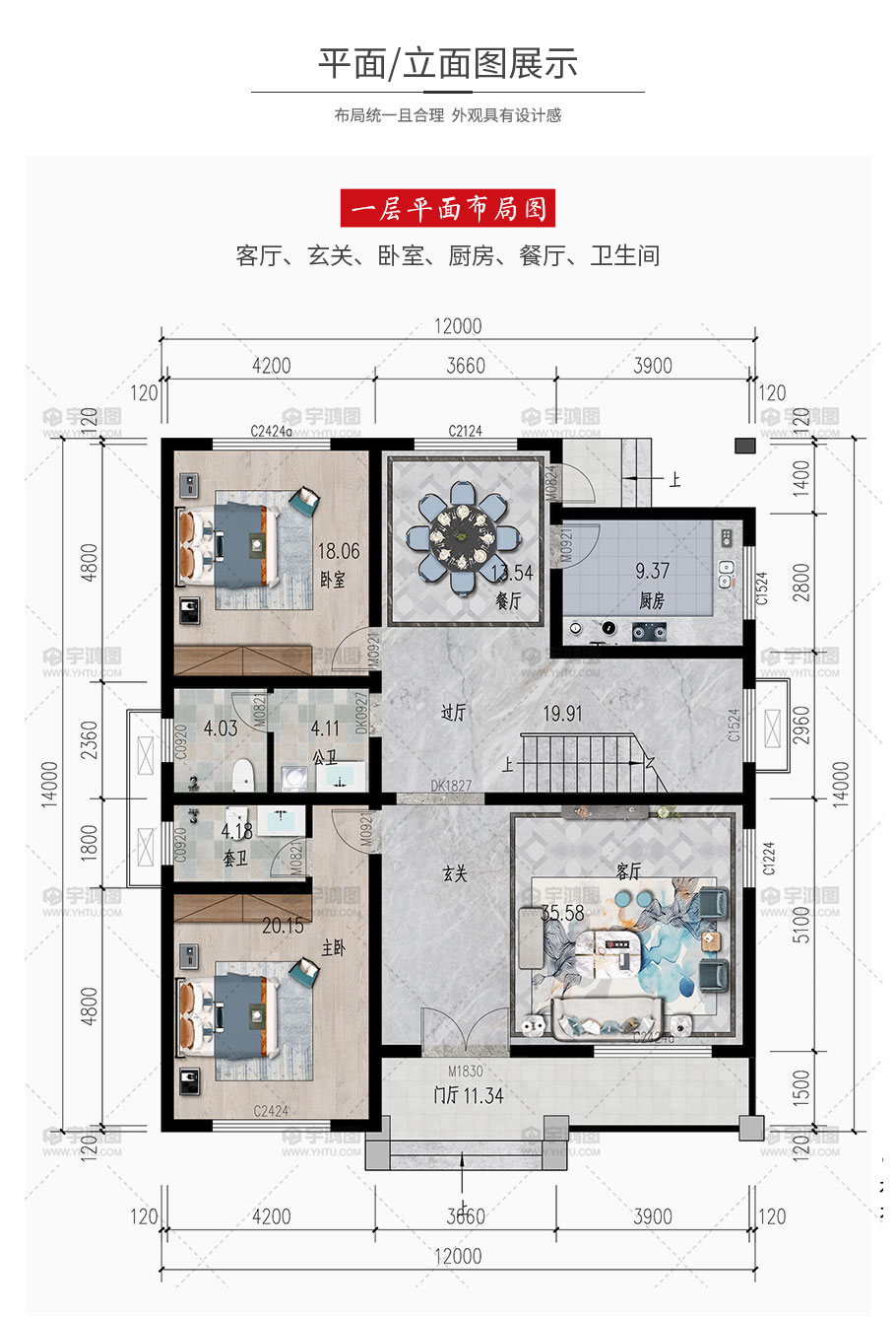 開間:12米 | 進深:14米 | 占地面積:156平方米 | 建筑面積:434.6平方米 |