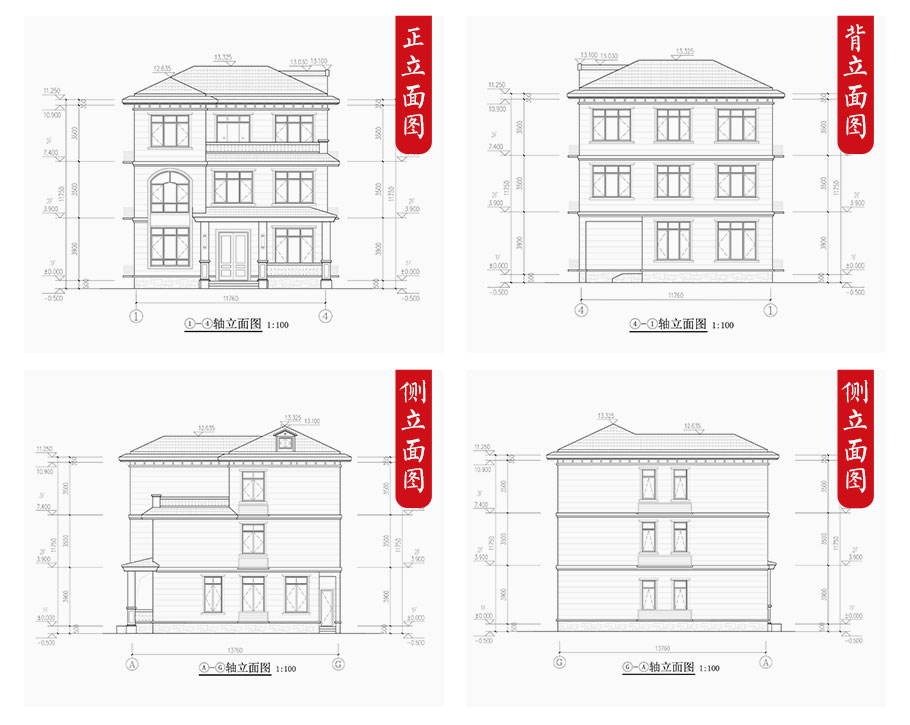 建筑圖: | 建筑平面圖:一層平面圖,二層平面圖,三層平面圖; 建筑立面圖:東立面圖,西立面圖,南立面圖,北立面圖,剖面圖; 大樣圖:樓梯詳圖,細部大樣,門窗大樣 |