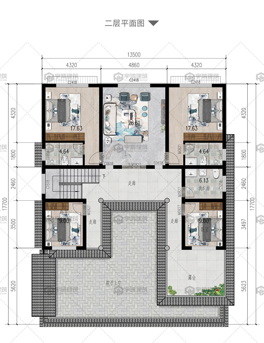 開間:13.5米 | 進深:17.7米 | 占地面積:238平方米 | 建筑面積:316平方米 |