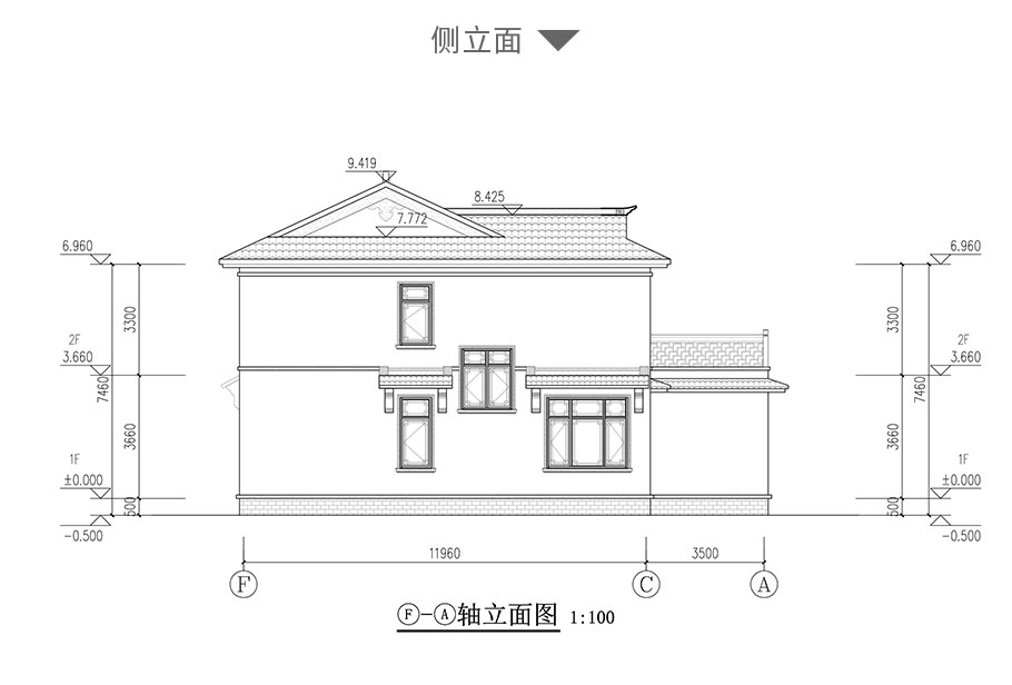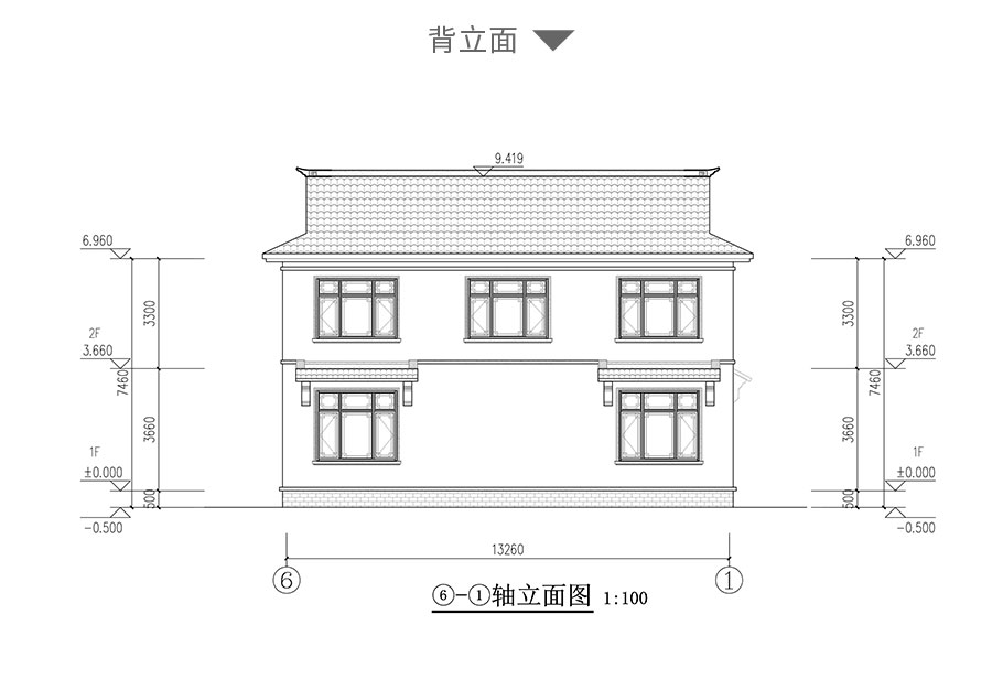建筑圖: | 建筑平面圖:一層平面圖,二層平面圖; 建筑立面圖:東立面圖,西立面圖,南立面圖,北立面圖,剖面圖; 大樣圖:樓梯詳圖,細部大樣,門窗大樣 |