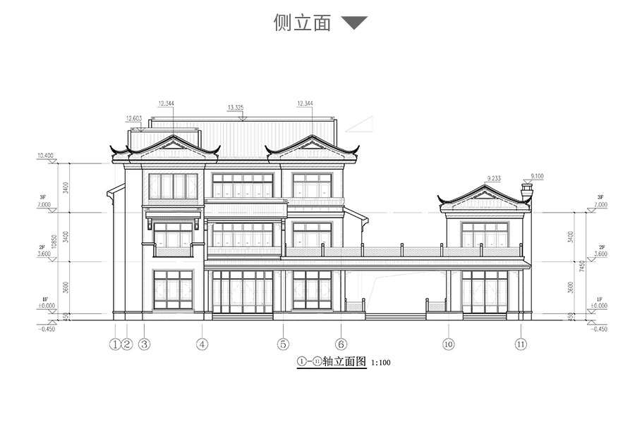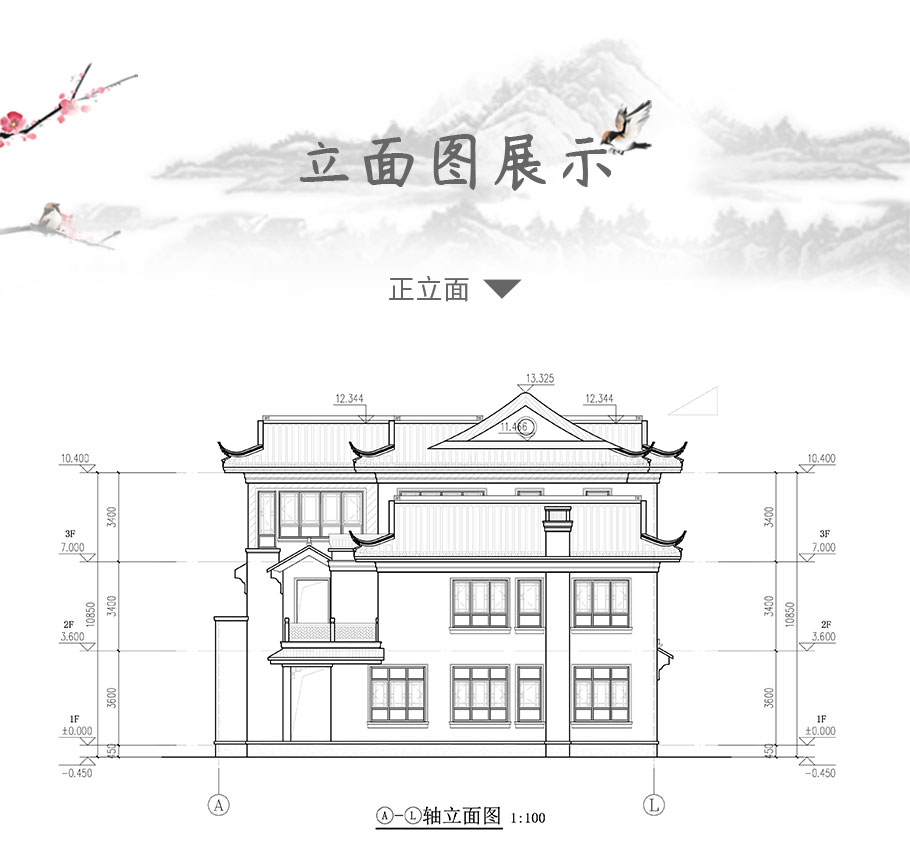 風格:中式 | 層數:三層 | 結構形式:磚混結構 | 圖紙編號:YH-A-3237 |