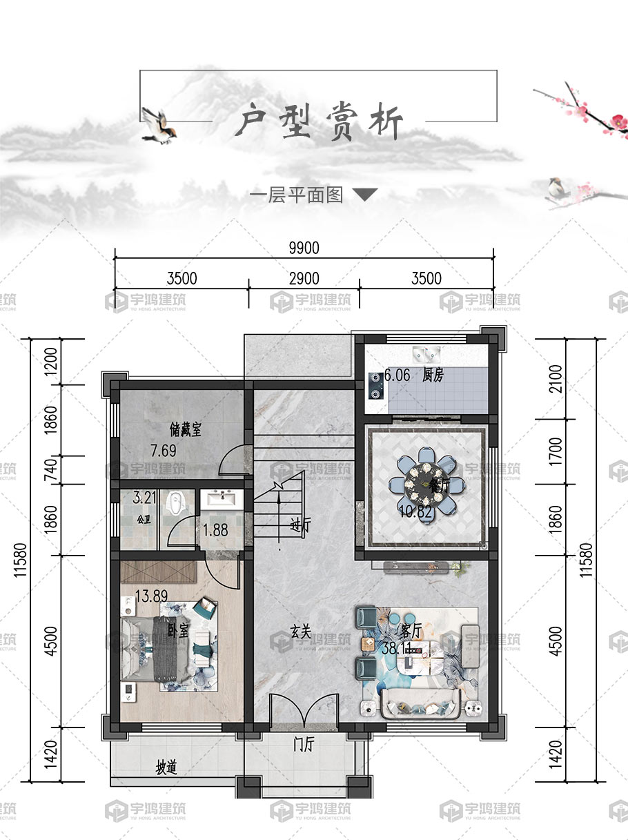 開間:9.9米 | 進深:11.5米 | 占地面積:105平方米 | 建筑面積:202平方米 |