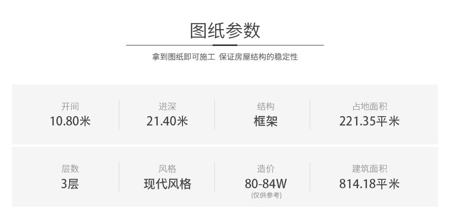 開間:10.8米 | 進深:21.4米 | 占地面積:220平方米 | 建筑面積:814平方米 |